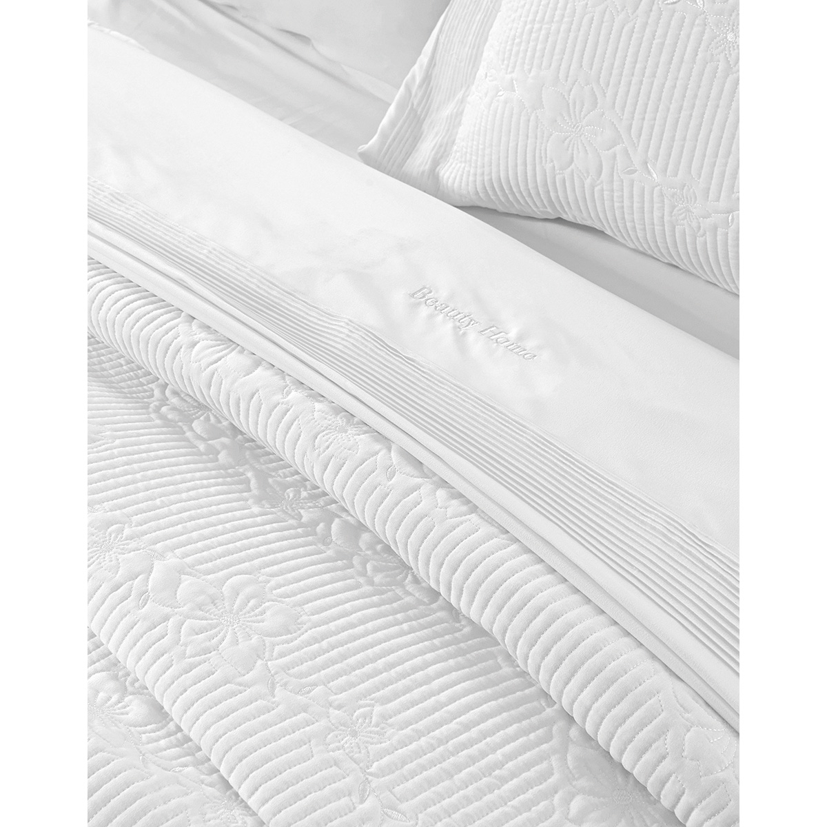 H Beauty Home θέλει να βρίσκεται δίπλα σας σε κάθε στιγμή της ζωής σας. Σας παρουσιάζουμε την νέα συλλογή μας σε νυφικά σετ ώστε να δημιουργήσετε ένα εντυπωσιακό νυφικό κρεβάτι που θα αποτελέσει το κέντρο της προσοχής στο υπνοδωμάτιο σας την ομορφότερη μέρα της ζωής σας. Το σετ νυφικού κρεβατιού προσφέρει όχι μόνο λειτουργικότητα αλλά αποτελεί την ιδανική επιλογή για να δώσετε μια νότα πολυτέλειας,κομψότητας και ρομαντισμού στον χώρο σας. Το νυφικό σετ σε βαλίτσα περιλαμβάνει : 1 βαλίτσα λευκή που περιέχει: 1 τεμάχιο κουβερλί σε διάσταση 230×250 το οποίο θα αγκαλιάσει το κρεβάτι σας με μια αίσθηση άνεσης και ζεστασιάς , το σετ συμπληρώνει 1 τεμάχιο πανωσέντονο σε διάσταση 240×260, 1 τεμάχιο κατωσέντονο σε διάσταση 240×260 και 4 τεμάχια μαξιλαροθήκες σε διάσταση 50×70 είναι σχεδιασμένα για να εφαρμόζουν τέλεια προσφέρoντας μια αίσθηση απαλότητας και άνεσης κατά τη διάρκεια του ύπνου. Είναι κατασκευασμένο από microfiber κεντημένο επιλεγμένο με προσοχή για την υψηλή ποιότητα και την αντοχή του, ενώ η υφή του είναι μαλακή και απαλή στην αφή. Είτε πρόκειται για μια κλασική επιλογή είτε για κάτι πιο μοντέρνο και δυναμικό, αυτό το σετ θα σας χαρίσει μια αίσθηση πολυτέλειας και άνεσης κάθε φορά που θα το χρησιμοποιείτε. Προσθέστε οποιαδήποτε τελευταία διακοσμητικά στοιχεία, όπως πετσέτες ή ρόμπες λουτρού, που θα συμπληρώσουν το στυλ και την αισθητική του νυφικού κρεβατιού σας