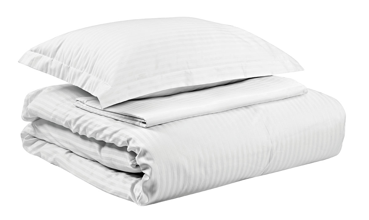 Παπλωματοθήκη Ξενοδοχείου υπέρδιπλη 235×245+30 Ribbon TC 230 Percal Pennie 70%Cot-30%Pol. Η σειρά Ribbon παράγεται από πυκνό ύφασμα 230 κλωστών πλούσιο σε βαμβάκι . Η προσθήκη 30% πολυεστέρα προσφέρει εύκολο σιδέρωμα καθώς επίσης βοηθάει στην διατήρηση της λευκότητας και δεν δημιουργεί κόμπους μετά από επαναλαμβανόμενες χρήσεις.