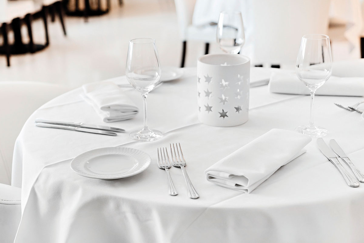 Το λευκό του ύφασμα θα συμπληρώσει άψογα κάθε χώρο ή περίσταση. Η ύφανσή του εξασφαλίζει εξαιρετική αντοχή στους λεκέδες και ανώτερης χρωματικής φωτεινότητας.Διατίθενται ειδικές διαστάσεις κατόπιν παραγγελίας