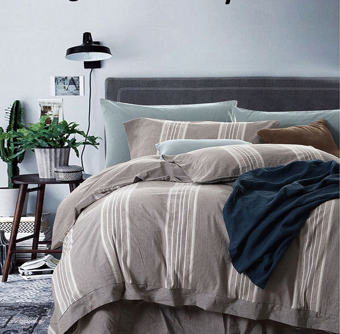 Πάπλωμα υπέρδιπλο Grooves. Το σετ περιλαμβάνει 1τεμάχιο πάπλωμα σε διάσταση 220×240 και 2 τεμάχια μαξιλαροθήκες σε διάσταση 50×70. Η ποιότητά του είναι 100% Βαμβάκι, eco pre washed yarn dyed(νηματοβαφή)