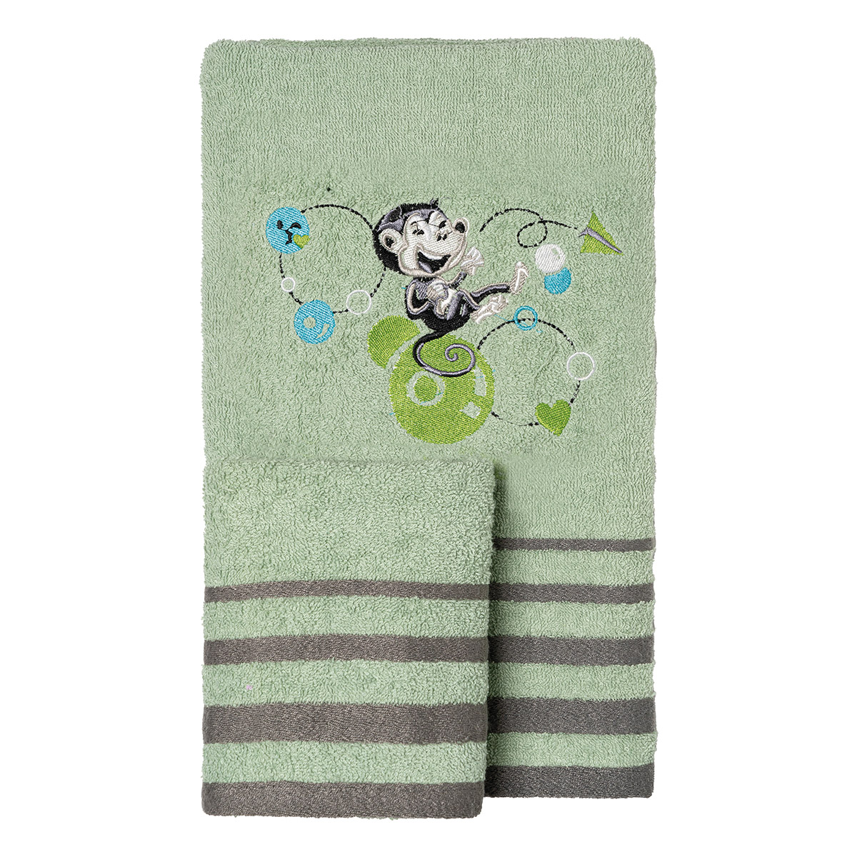 Σετ πετσέτες 2 τεμαχίων ( 40×70 + 70×130 ), κατασκευασμένη από 100% βαμβάκι με χαρούμενο κέντημα.