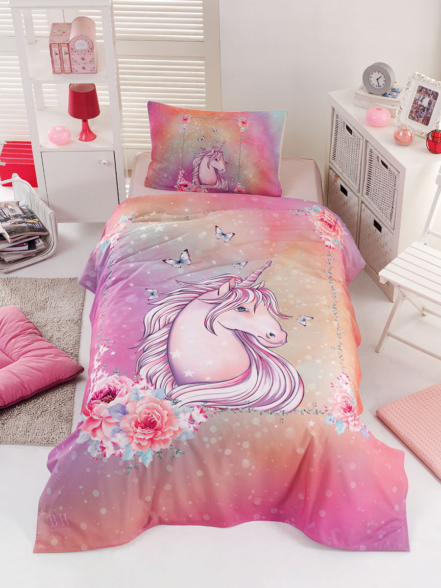 Σετ σεντόνια μονά Unicorn Το σετ περιλαμβάνει 1 τεμάχιο πανωσέντονο σε διάσταση 160×240 , 1 τεμάχιο κατωσέντονο σε διάσταση 160×240 και 1 τεμάχιο μαξιλαροθήκη σε διάσταση 50×70 .Η ποιότητά του είναι cotton 100%