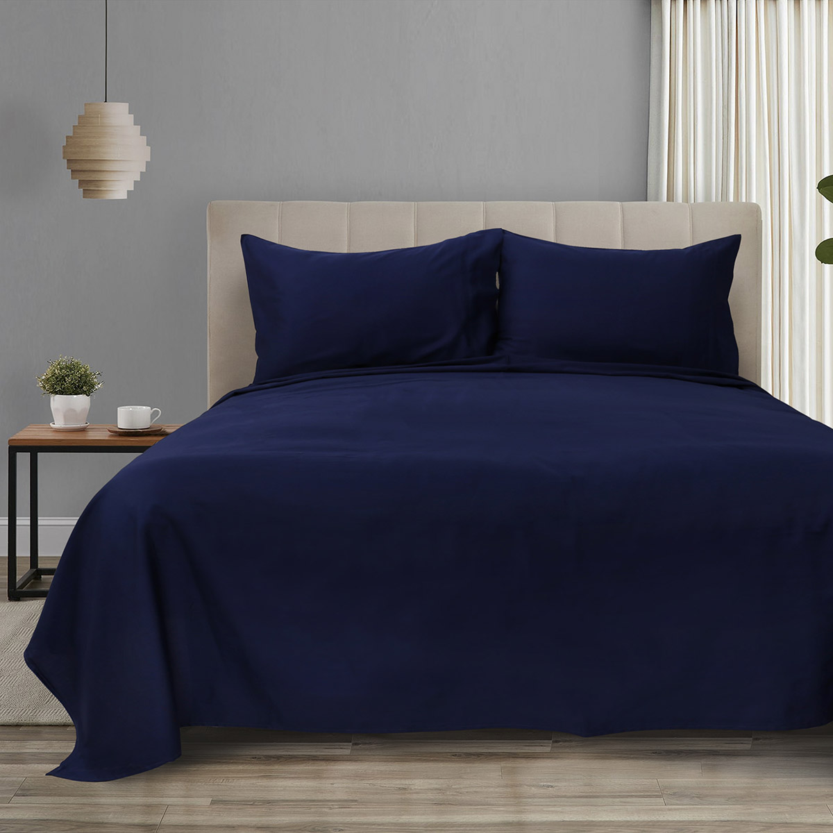 Σετ σεντόνια King Size με λάστιχο. Το σετ περιλαμβάνει 1 τεμάχιο πανωσέντονο σε διάσταση 260×270 , 1 τεμάχιο κατωσέντονο σε διάσταση 180×200+37 και 2 τεμάχια μαξιλαροθήκες σε διάσταση 52×76. Η ποιότητά του είναι 100% Βαμβακοσατέν.